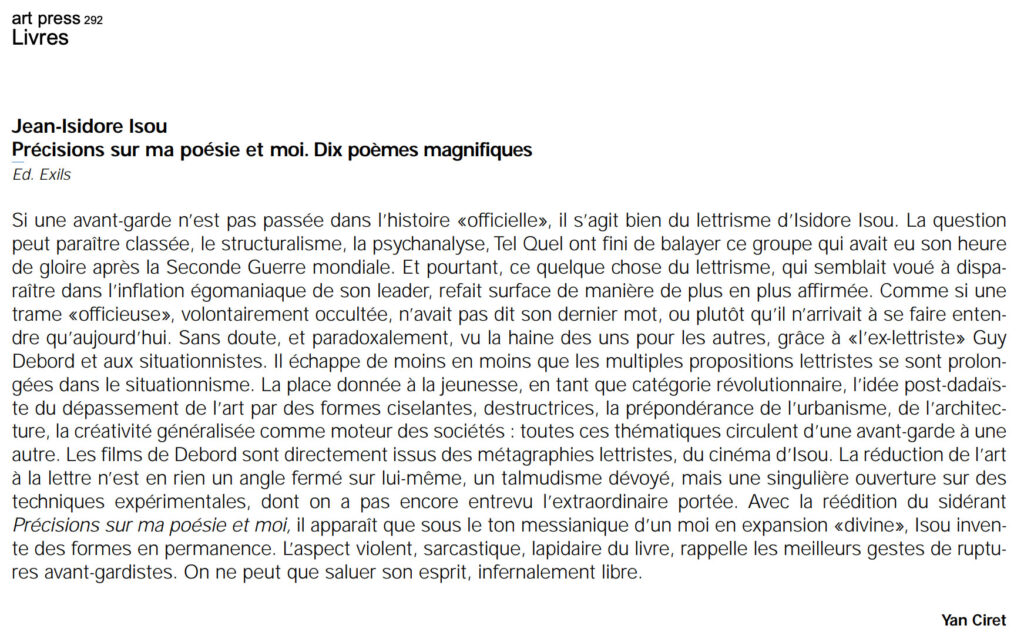Articles, entretiens, documentaires, de Yan Ciret, critique, essayiste, commissaire d’exposition